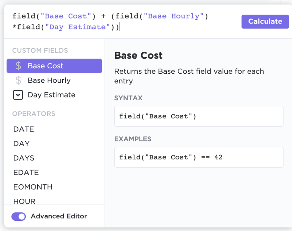 Advanced calculations right within ClickUp