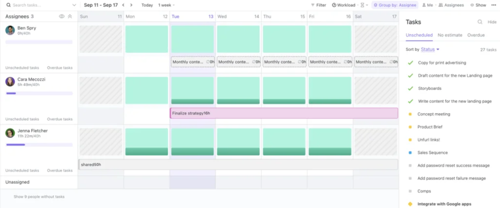 ClickUp Workload view for resource allocation