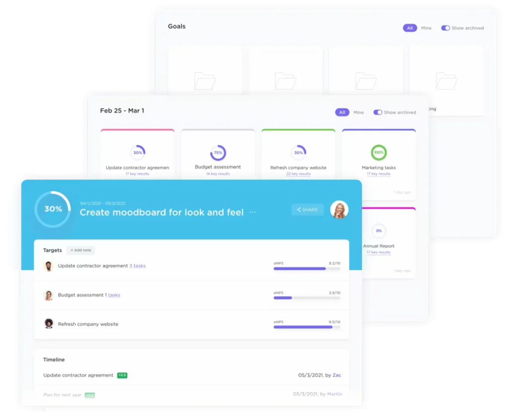 ClickUp Goals and progress tracking