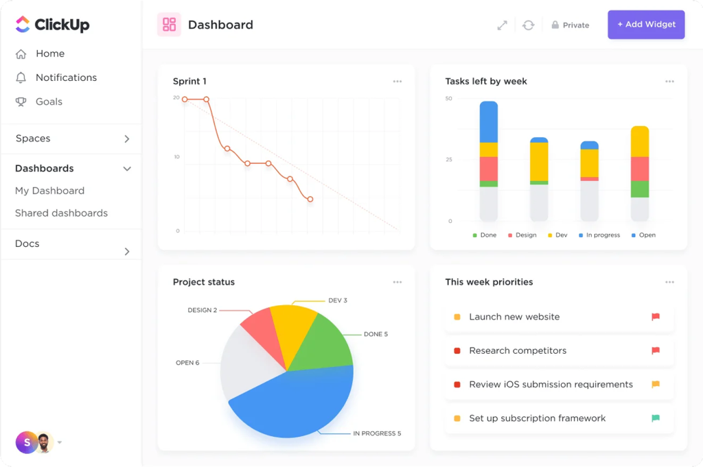 Rich insights with ClickUp Dashboard